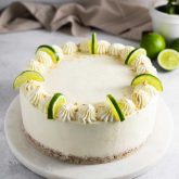 - Skær limes i skiver og pynt kagen sammen med kiksekrummer.2-3 lime, Digestive kiks